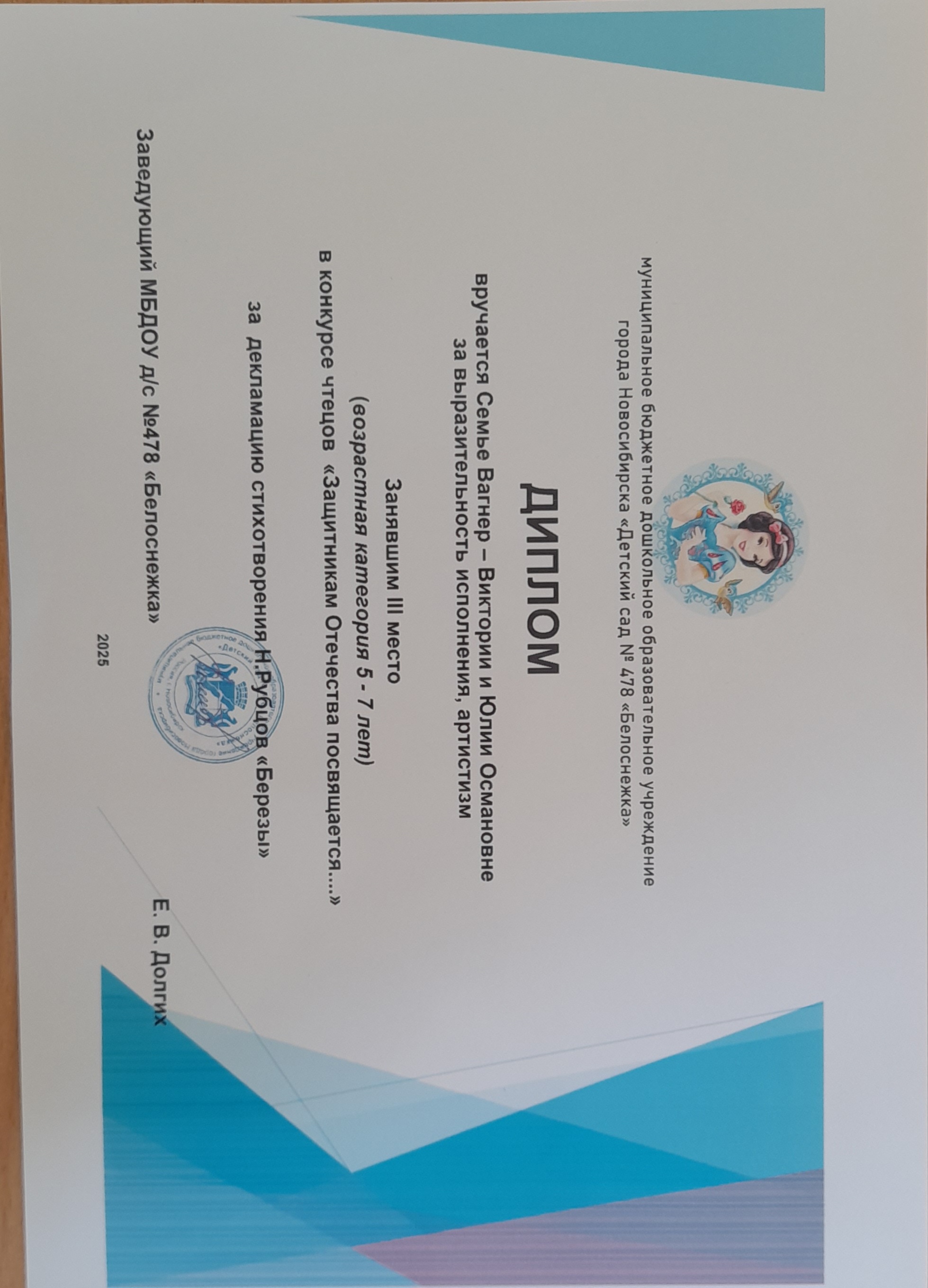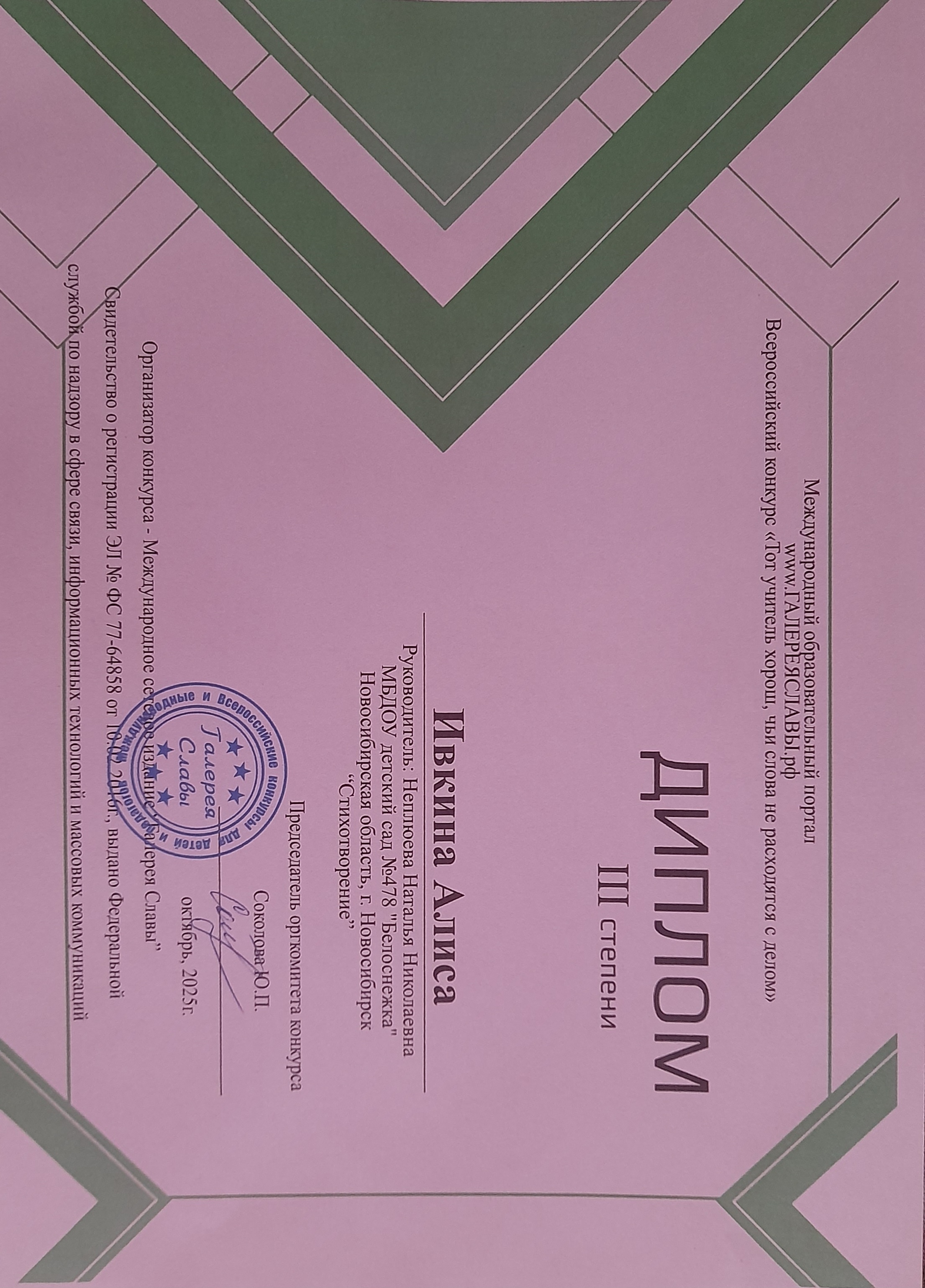 Диплом 3 степени