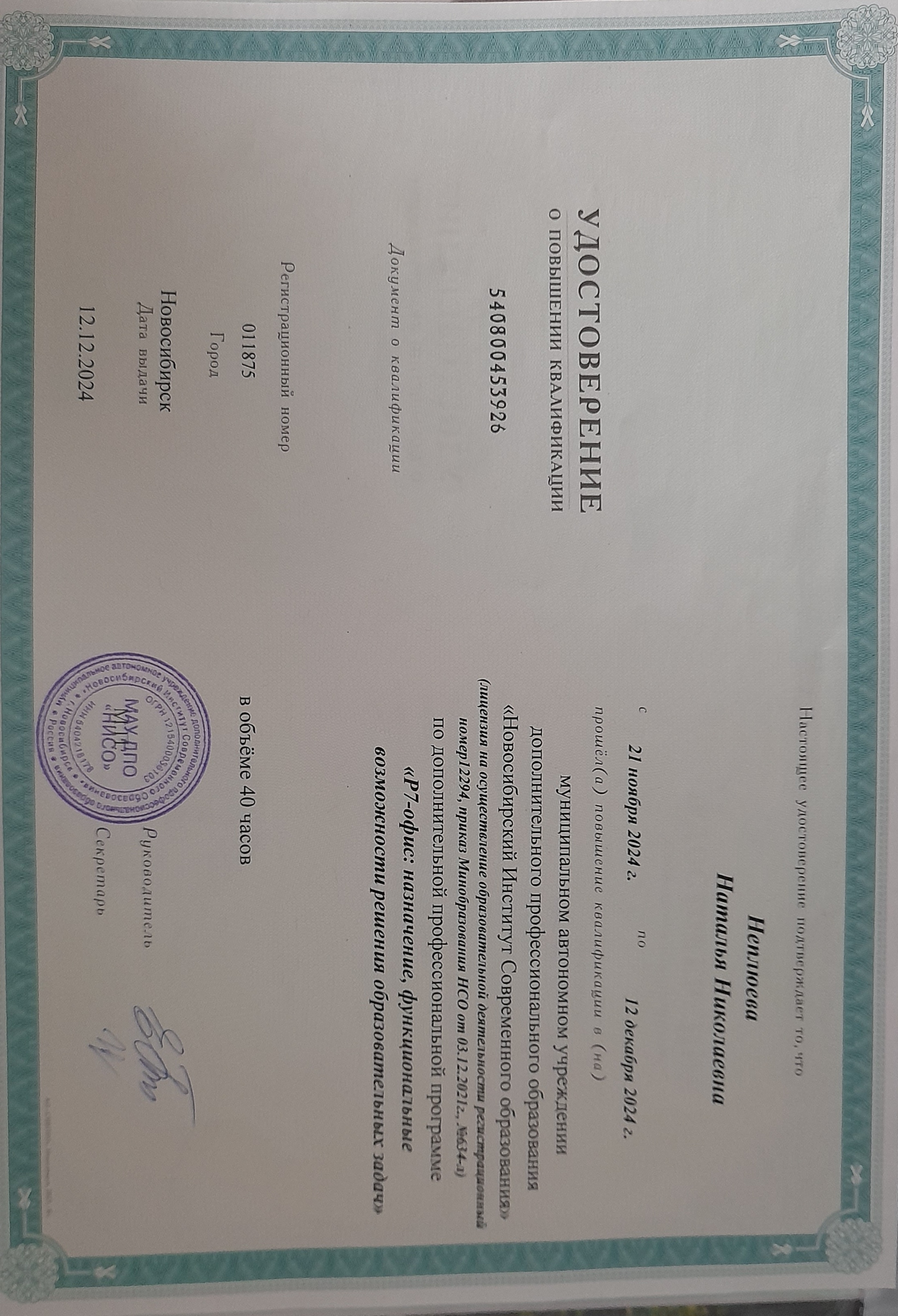 ("Новосибирский институт повышения квалификации и переподготовки работников образования". 72 часачасов. Форма обучения: очно-заочная.).